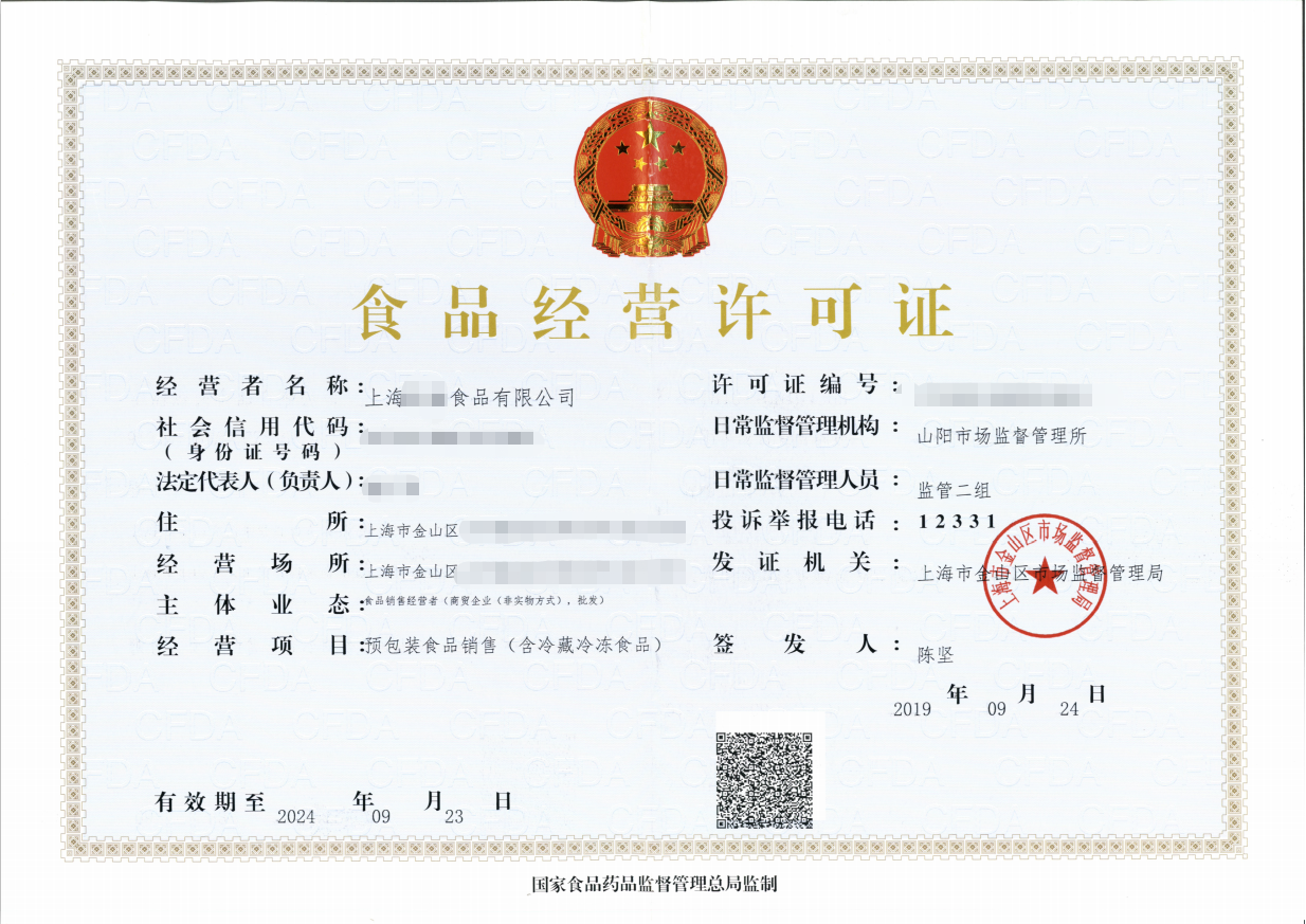 作出準予決定并應發放《食品經營許可證》的,向申請人發放《食品經營許可證》。